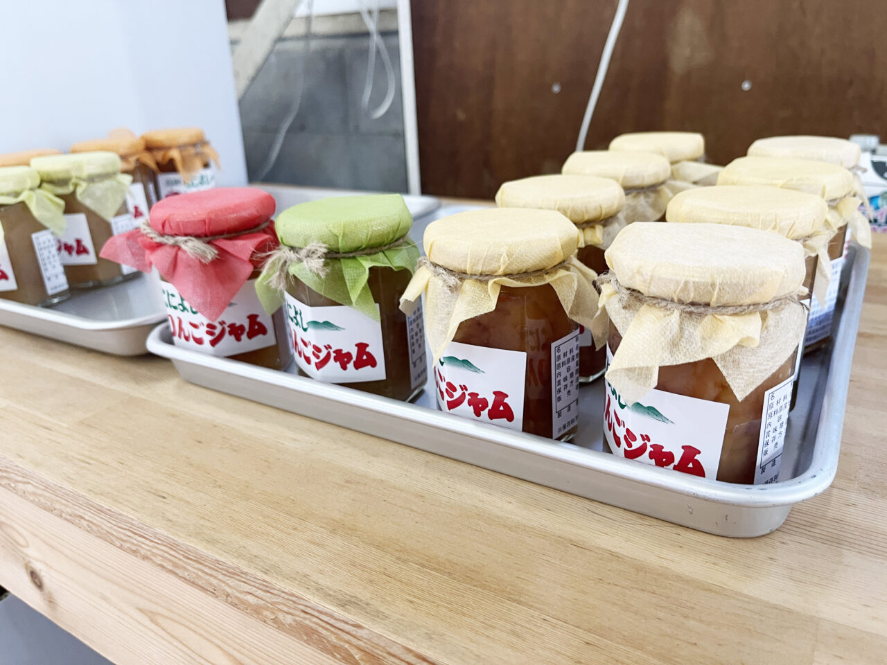 直売所限定でB品りんごが数量限定で販売されています。傷こそありますが、お味は絶品!たっぷり3kgで1,000円とりんご好きに嬉しい!100%ストレートジュースやジャムなどの加工品もありますよ!この日は5種のりんごのジャムが並んでいました。品種ごとに分けて作られているので、食べ比べをするのも楽しそうです。