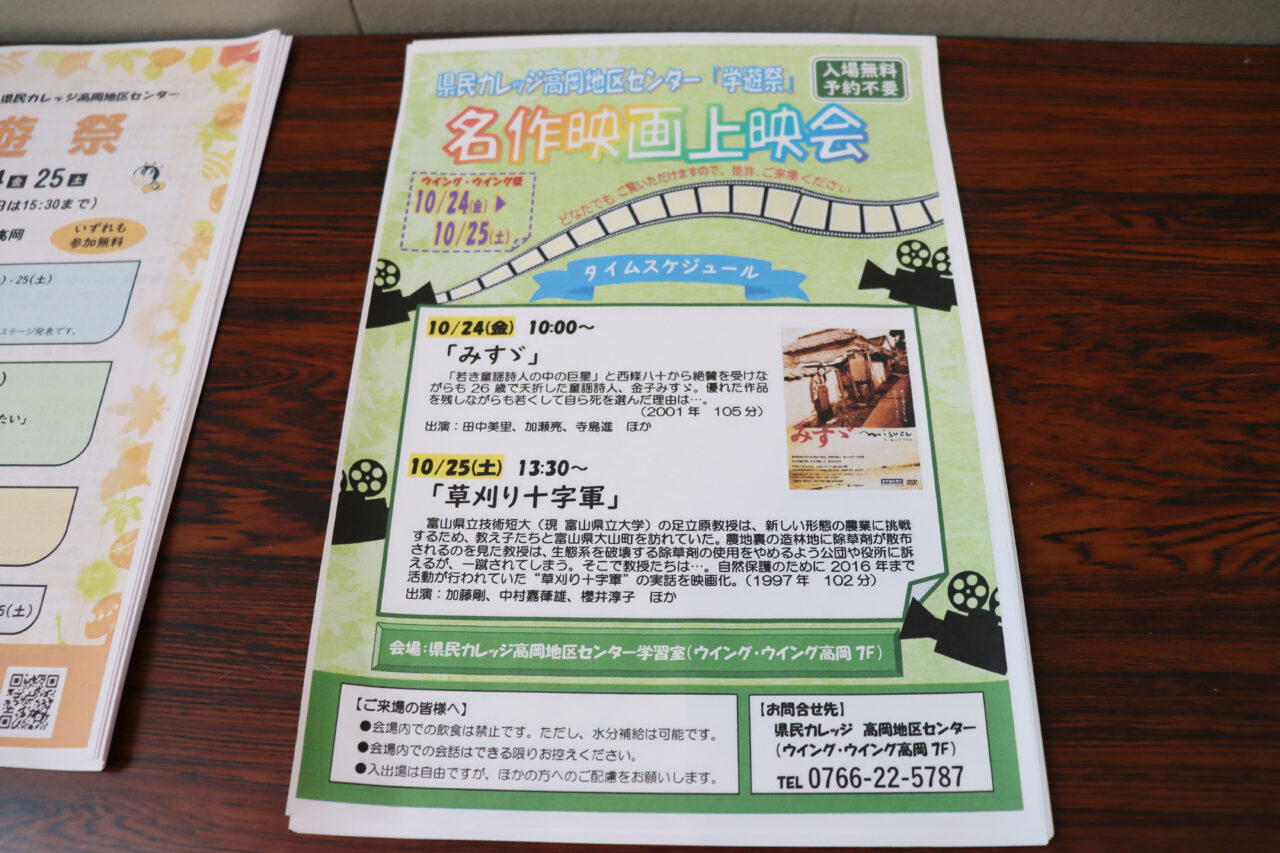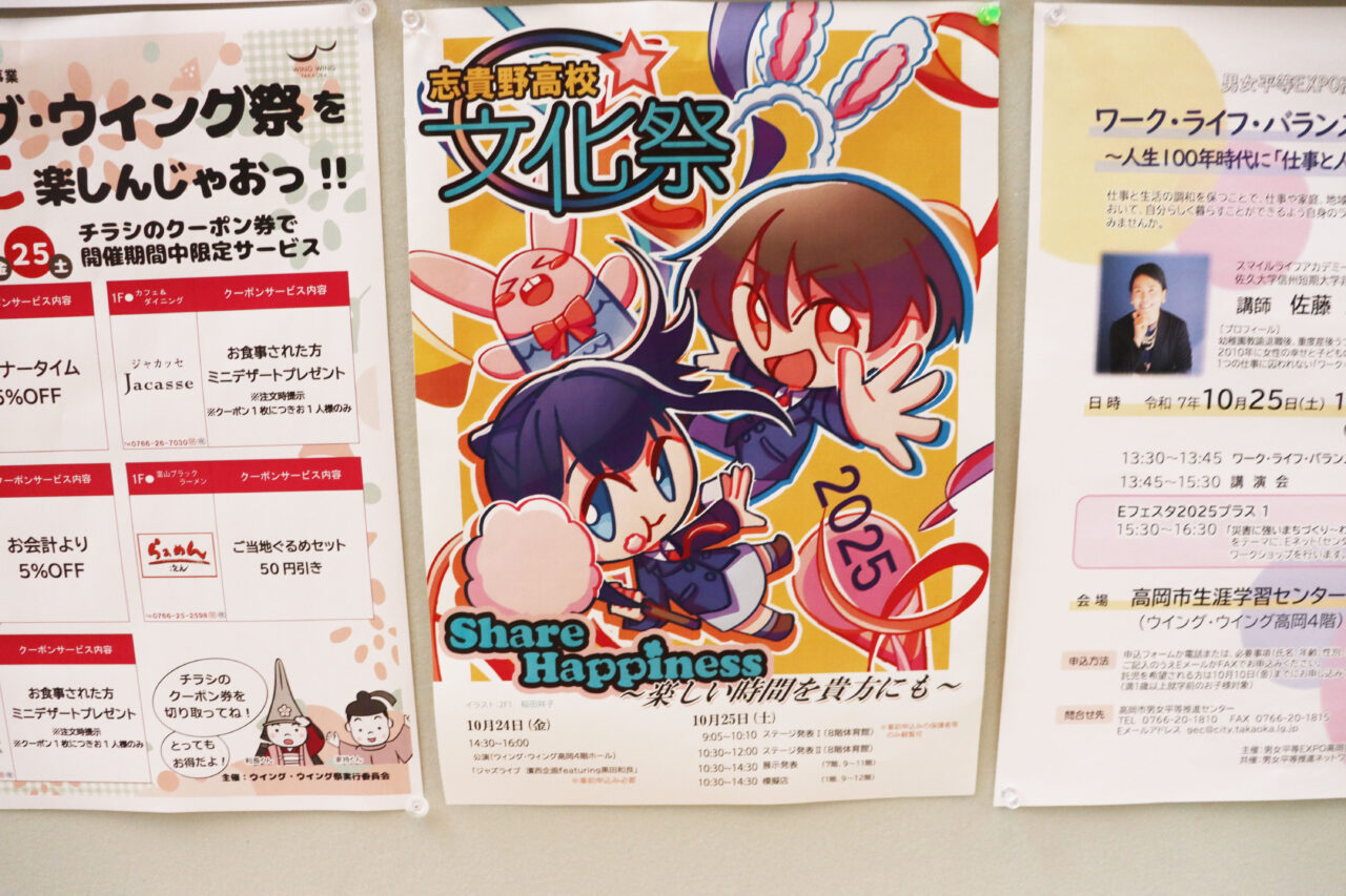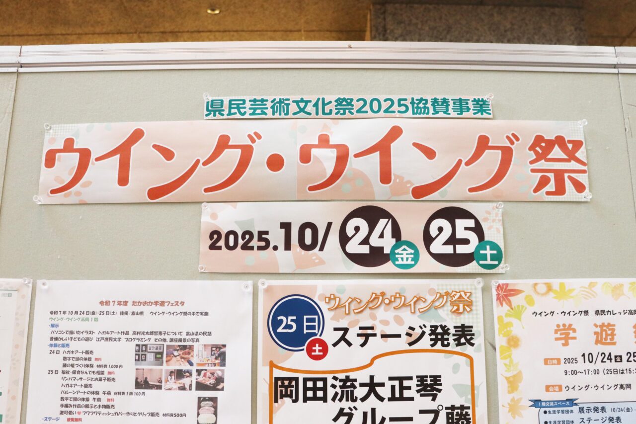 主催はウイング・ウイング祭実行委員会で、志貴野高校や県民カレッジ高岡地区センター、高岡市立中央図書館などが協力しています。文化と学びを身近に感じられる、秋の恒例イベントとして多くの来場が期待されています。