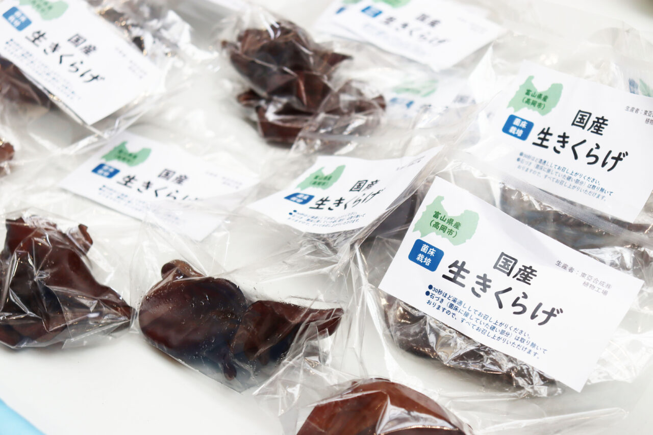 【高岡市】東亞合成が「きくらげ」販売スタート 御旅屋人マーケットでお披露目・試食会も 肉厚でプルプル、新たな特産の期待高まる