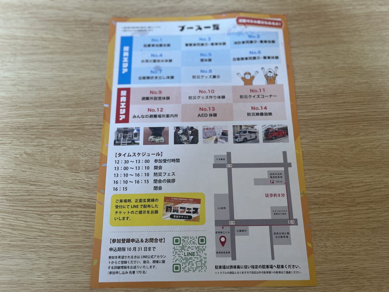 商工ビル周辺には自衛隊車両や消防車の展示も予定されており、迫力ある防災体験を通して、いざという時に役立つ知識を楽しく学べるイベントです。家族での参加もおすすめです。