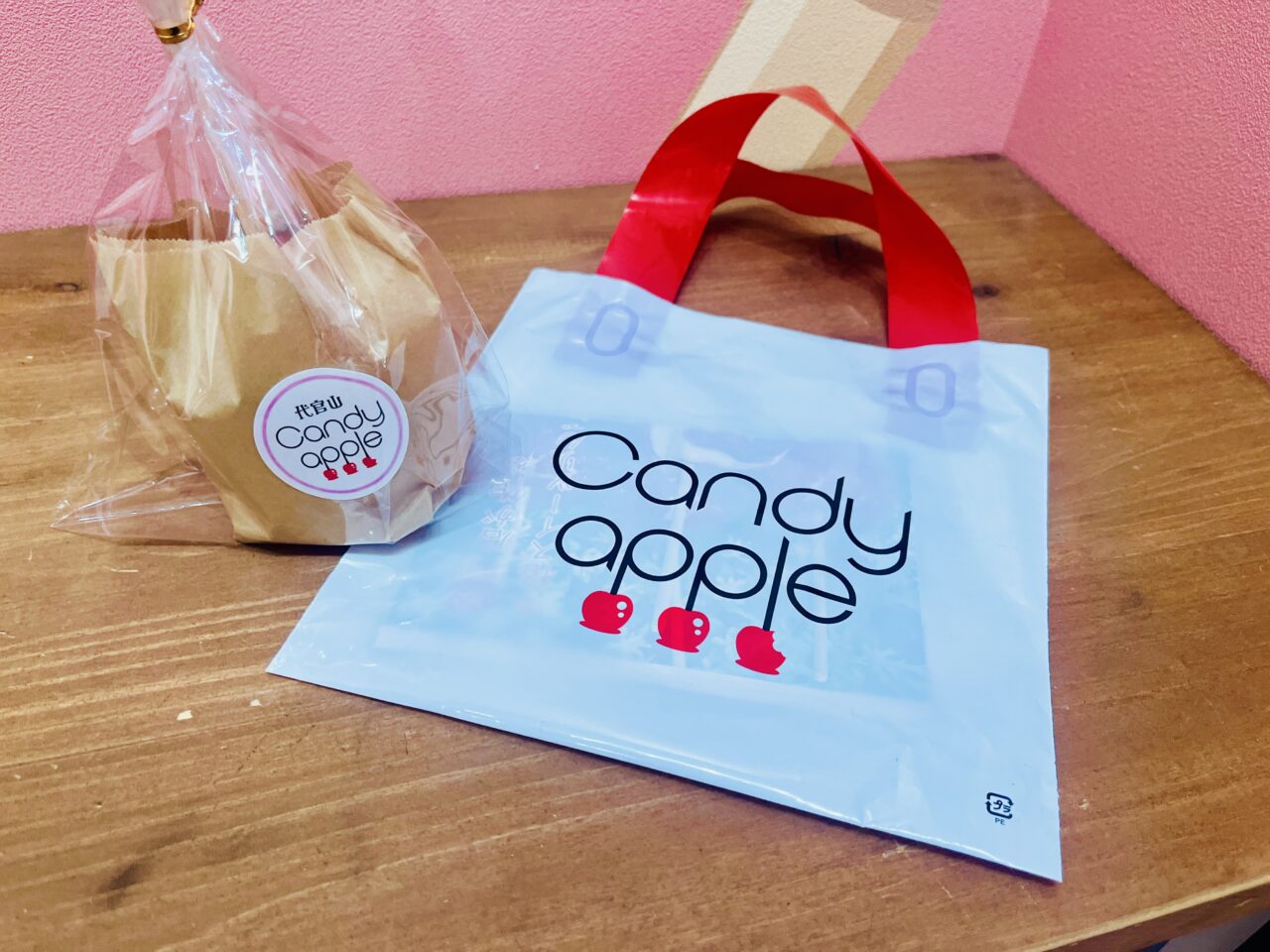 テイクアウトの方は、別料金でりんご飴サイズのビニールのバッグが購入できます。プレゼントにしなくても自分用に欲しくなっちゃいますね。