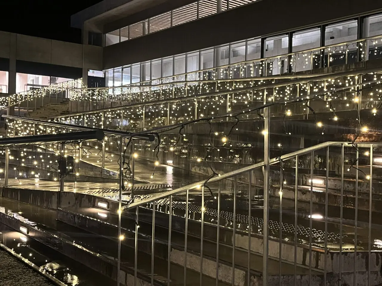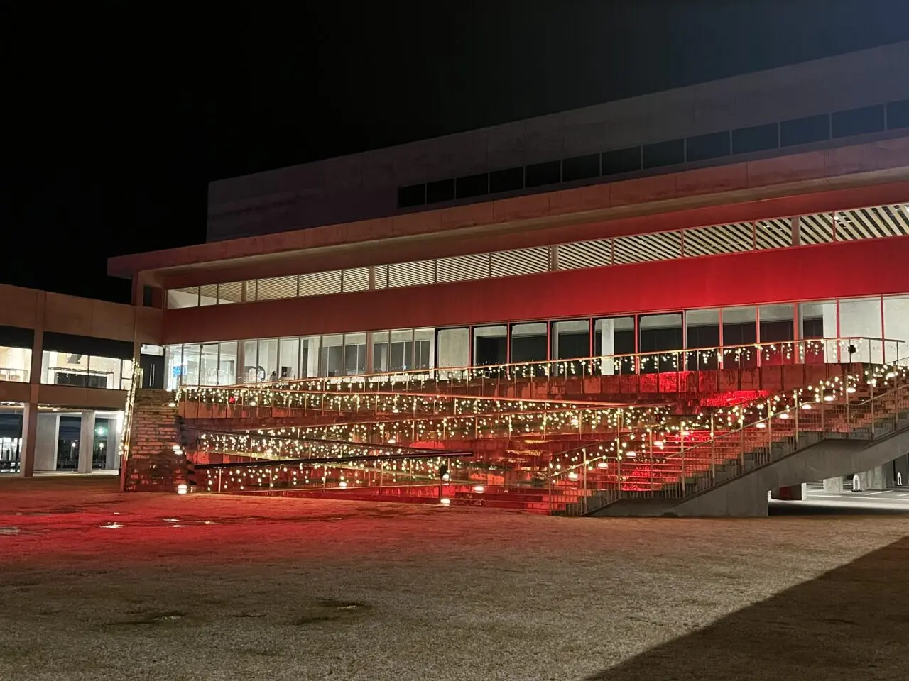 点灯式は同日午後4時より、同館敷地内の青空広場にて実施されます。約3,000個の暖かみのある黄色の電球が大階段を彩り、さらに時間の経過とともに青・赤・緑といった舞台照明のライトが重なり、光の移り変わりを楽しめる演出となっています。点灯式の所要時間はおよそ10分間で、一般観覧も無料で可能です。