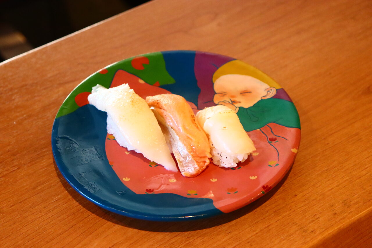 店内には23人の作品が展示されています。また、10種類の皿が実際に寿司の提供に使われるそうです。店内では制作背景や作家の紹介も行われています。