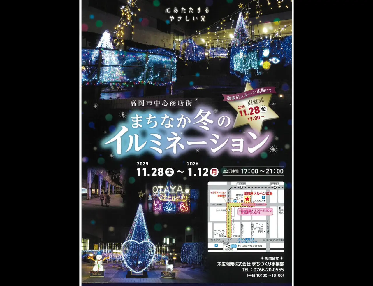 高岡市中心商店街を彩る冬の恒例イベント「まちなか冬のイルミネーション」が、今年も2025年11月28日(金)から開催されます。街なかを優しい光で包み、訪れる人々の心をあたためるイベントとして毎年親しまれています。