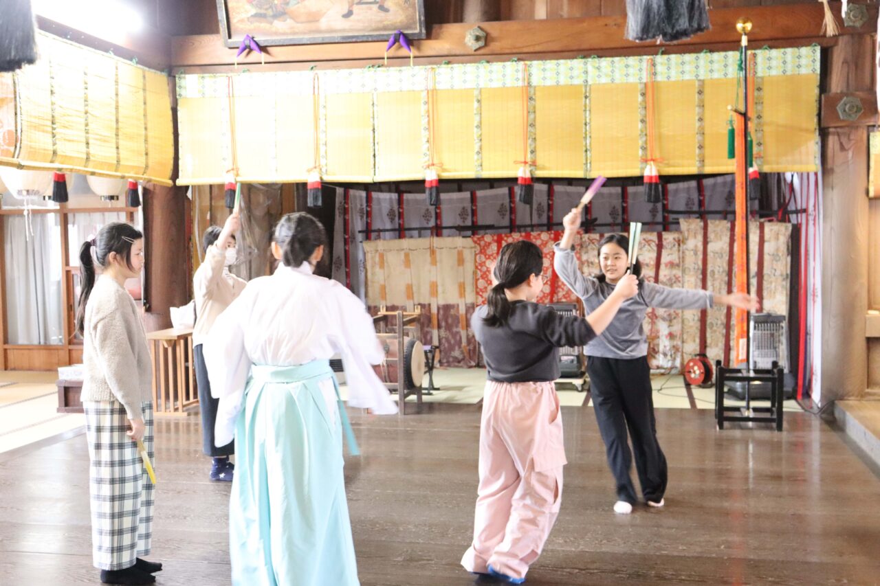 同神社では、これまでも児童が奉納舞に必要な所作を学び、結婚式や日々のお祭り、そして春季大礼祭(高岡御車山祭り)など、神事に参加してきました。