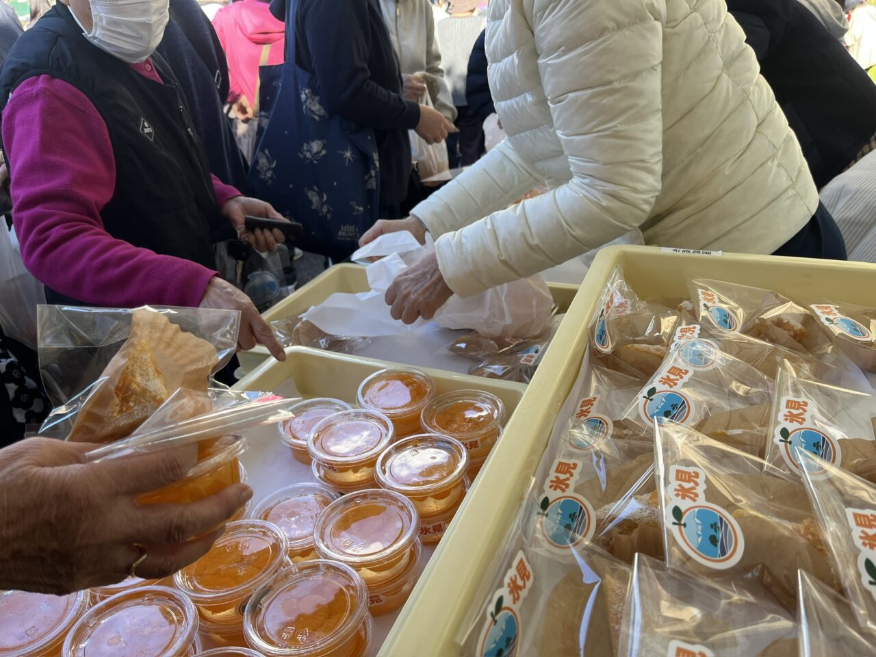 地元の女性グループが考案した、しっとり甘酸っぱい「みかんケーキ」や、シュワシュワ感とみかんが爽やかな「炭酸入りみかんゼリー」も大人気で、家族連れが楽しそうに選ぶ姿が見られました。