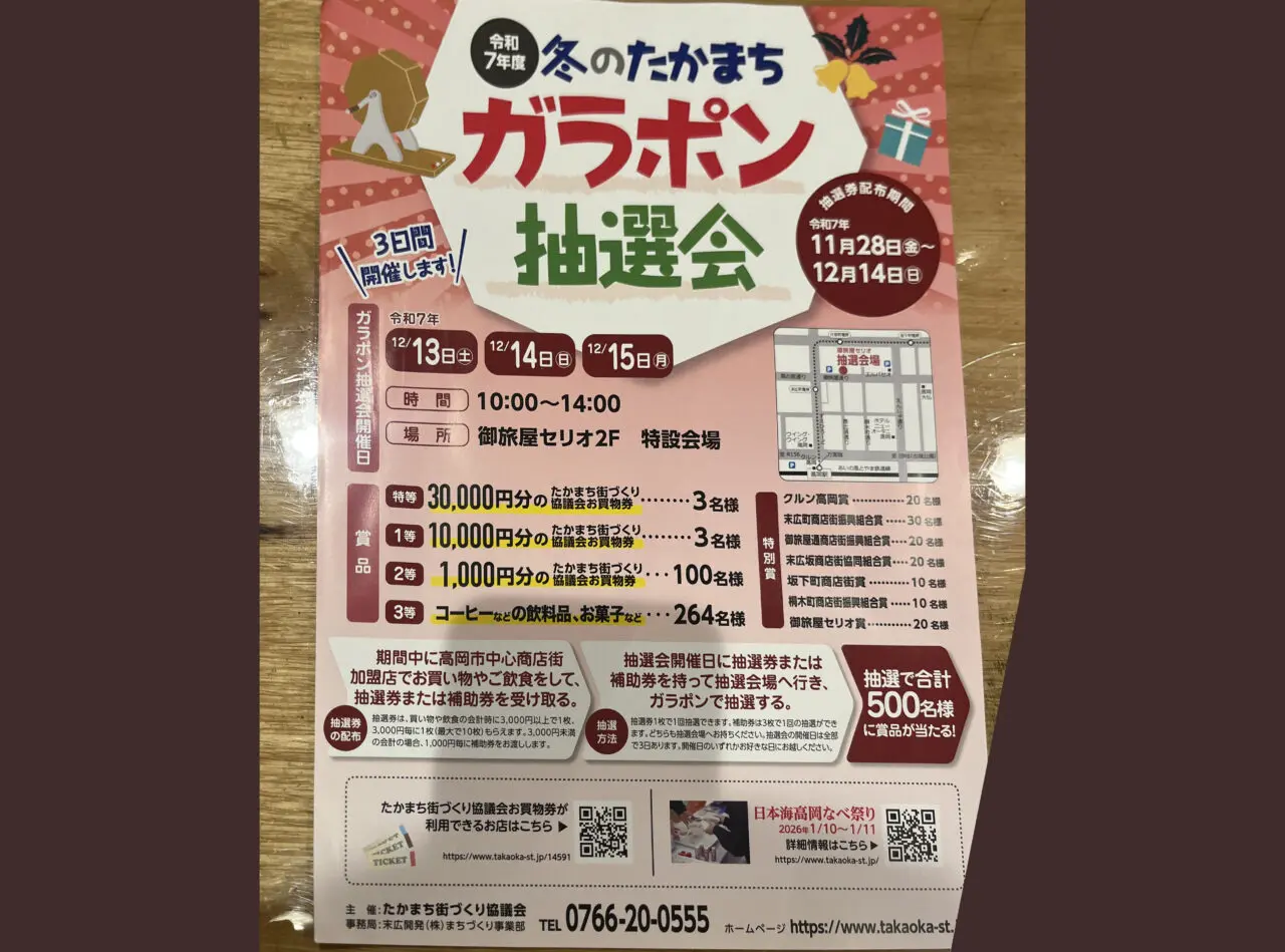 【高岡市】冬の恒例イベント「冬のたかまち ガラポン大抽選会」12月13・14・15日開催!