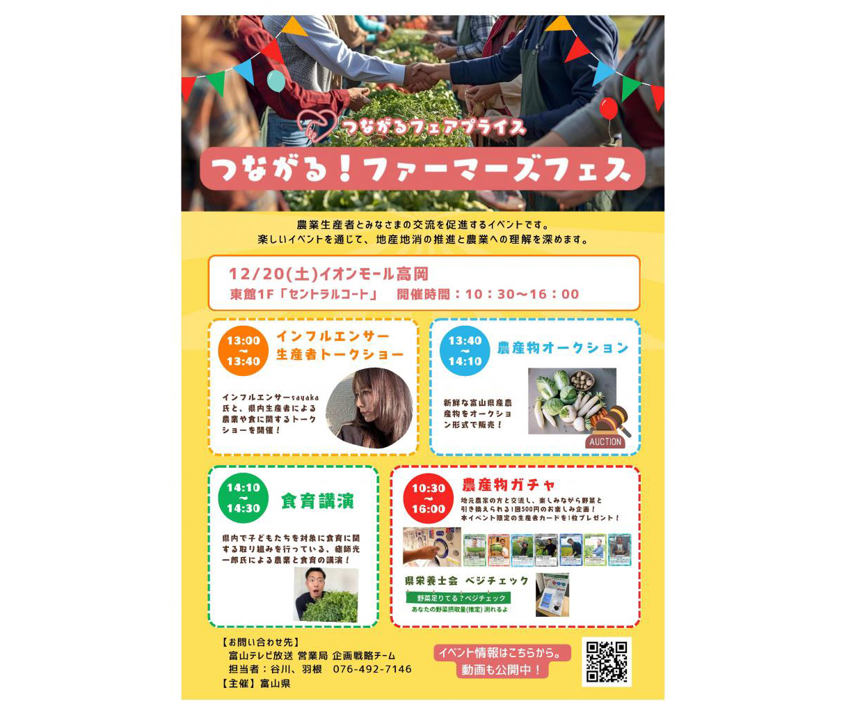 【高岡市】12/20開催 食べて・知って・楽しむ!富山の農業&食育イベントがイオンモール高岡で開催されます!
