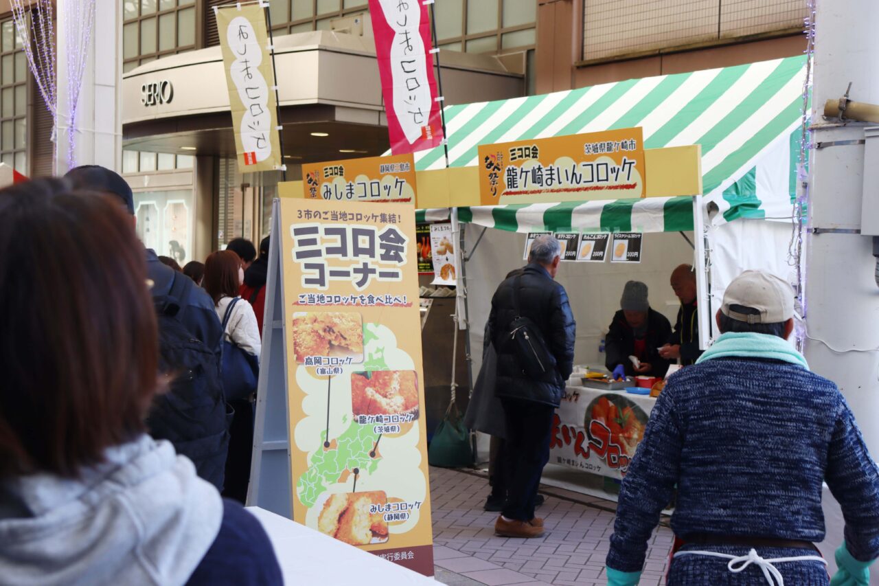 龍ケ崎市からは、「さつまいもコロッケ」「じゃがいもコロッケ」「れんこんコロッケ」「ライスコロッケ」と、バリエーション豊かなラインナップが並びました。