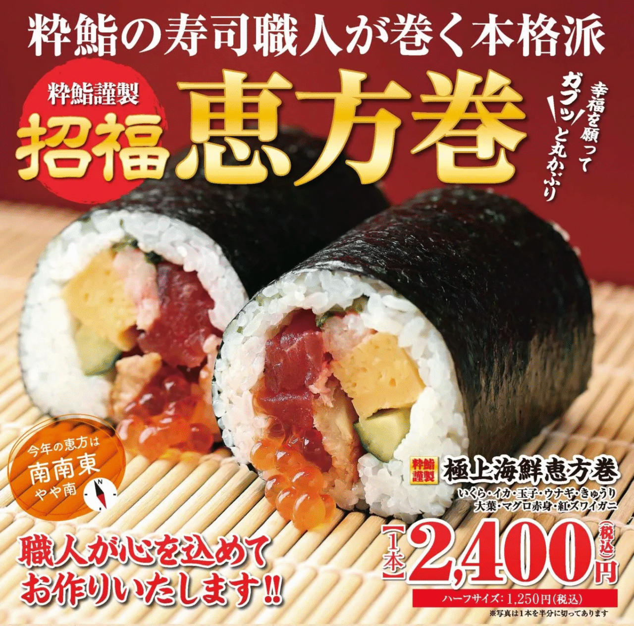 【高岡市】高岡市あわら町の粋鮨高岡店で恵方巻き予約受付中 人気No.1は「特上海鮮恵方巻き」