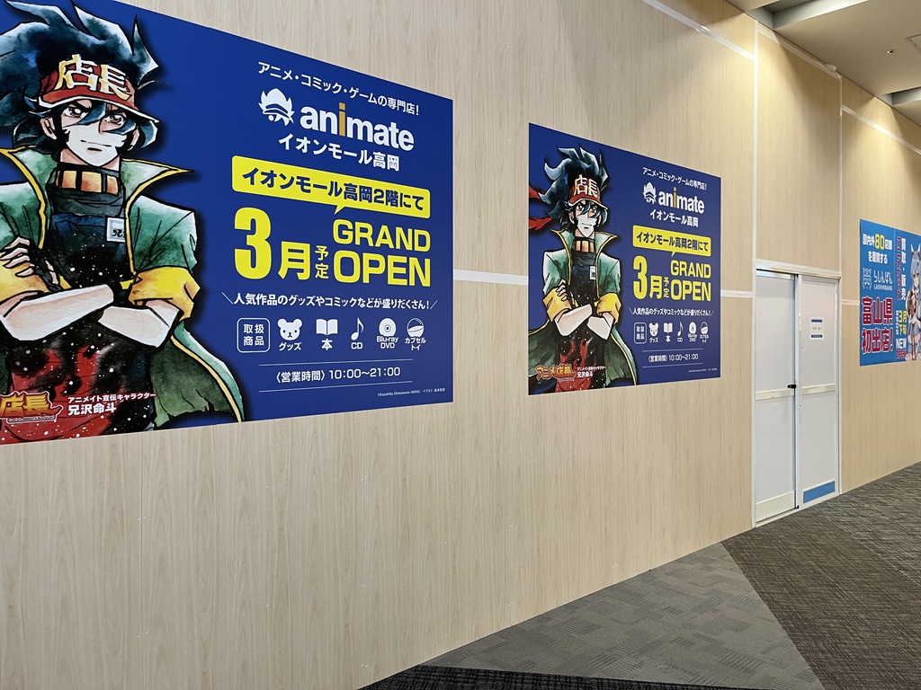 2026年1月19日(月)から始まった新規会員登録の解禁、2026年3月20日(金・祝)のオープン日の決定。店舗のオープン予定地には大きなポスターが多数貼られ、オープンに向けてドキドキワクワクの盛り上がりを見せている「アニメイトイオンモール高岡」です!