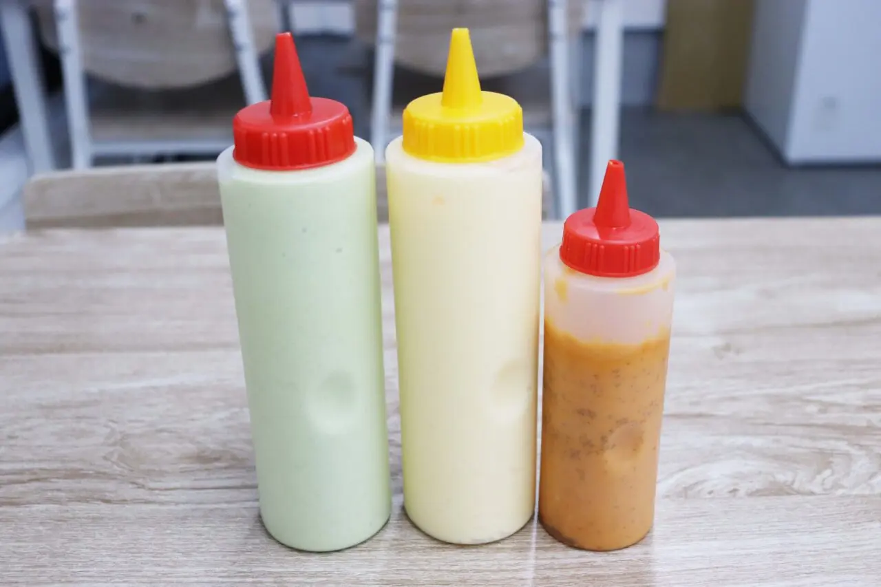 ここでは、定番のマヨネーズに加え、唐辛子がピリッと効きながらもまろやかさのある自家製ソース、さらにネギやニンニクを効かせた香味野菜の自家製ソースの3種類が添えられます。