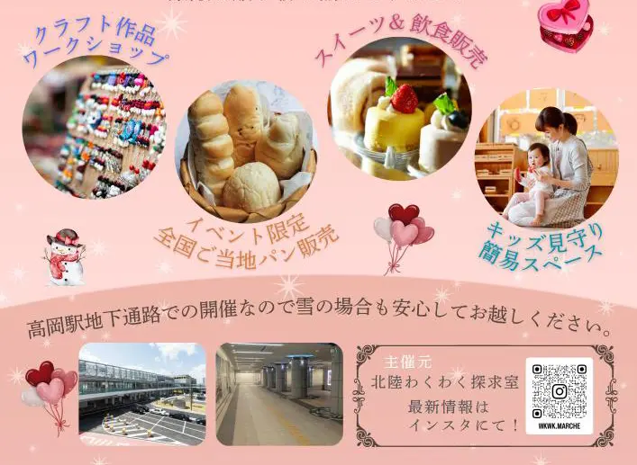 高岡駅地下通路「クルン高岡」を会場に、2026年2月8日(日)、「北陸わくわくMARCHE」が開催されます。開催時間は10:00〜16:00です。