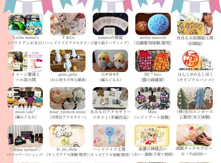 当日は、飲食やスイーツ、パン、ハンドメイド、占い、ワークショップ、キッズ向け企画など、さまざまなジャンルの出店者が集結。幅広い世代が楽しめる内容となっています。