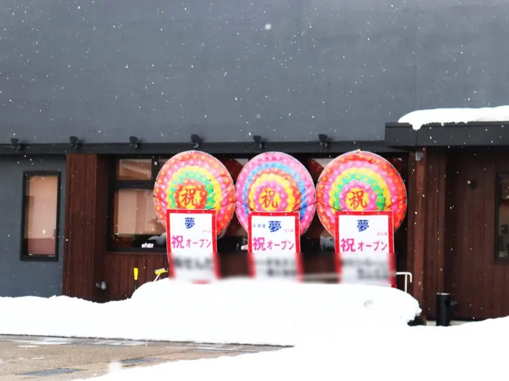 2026年1月に設置されていた花輪には、「居酒屋夢」という店名が記されており、新たな居酒屋としてオープンする可能性がありそうです。