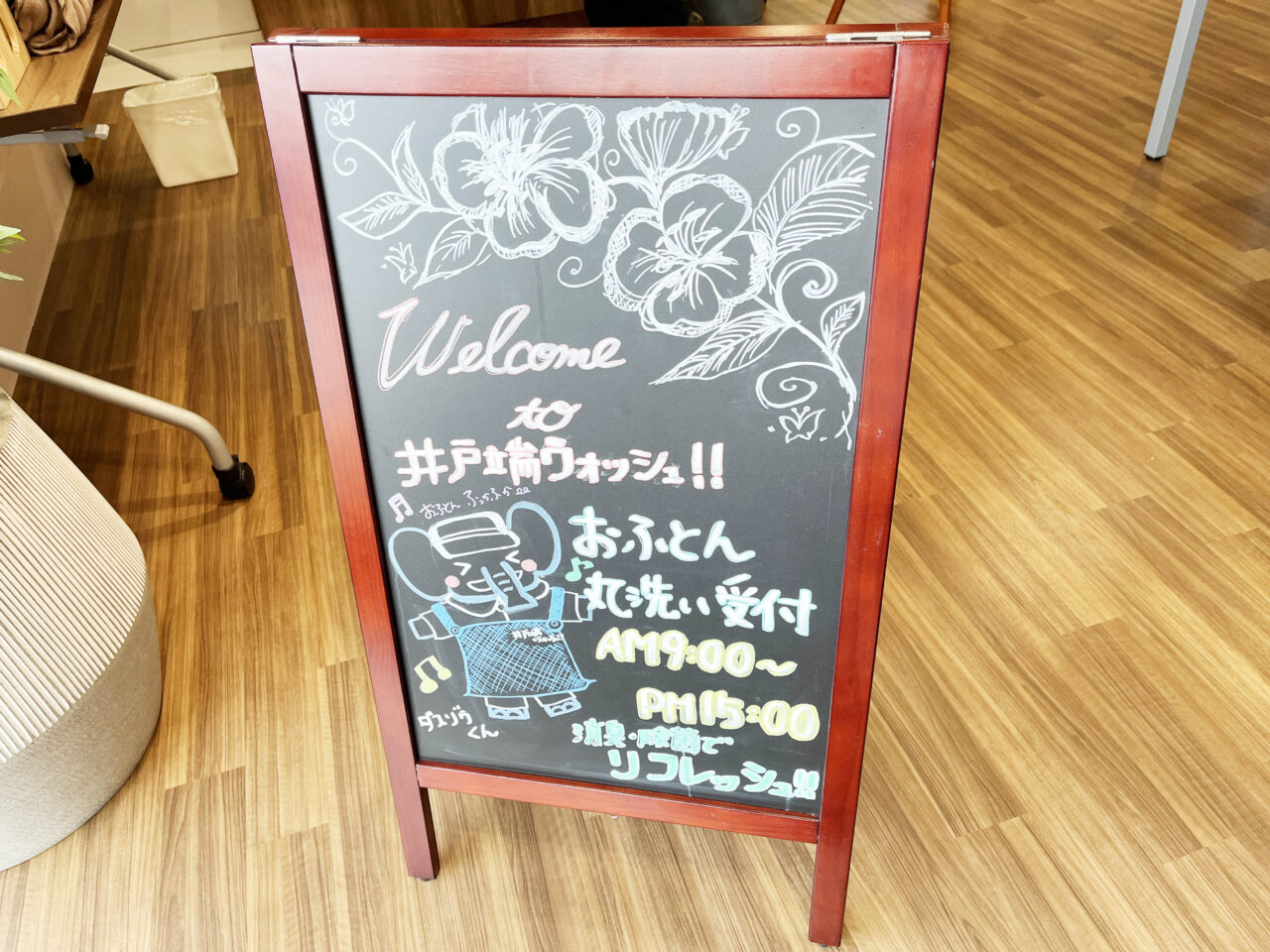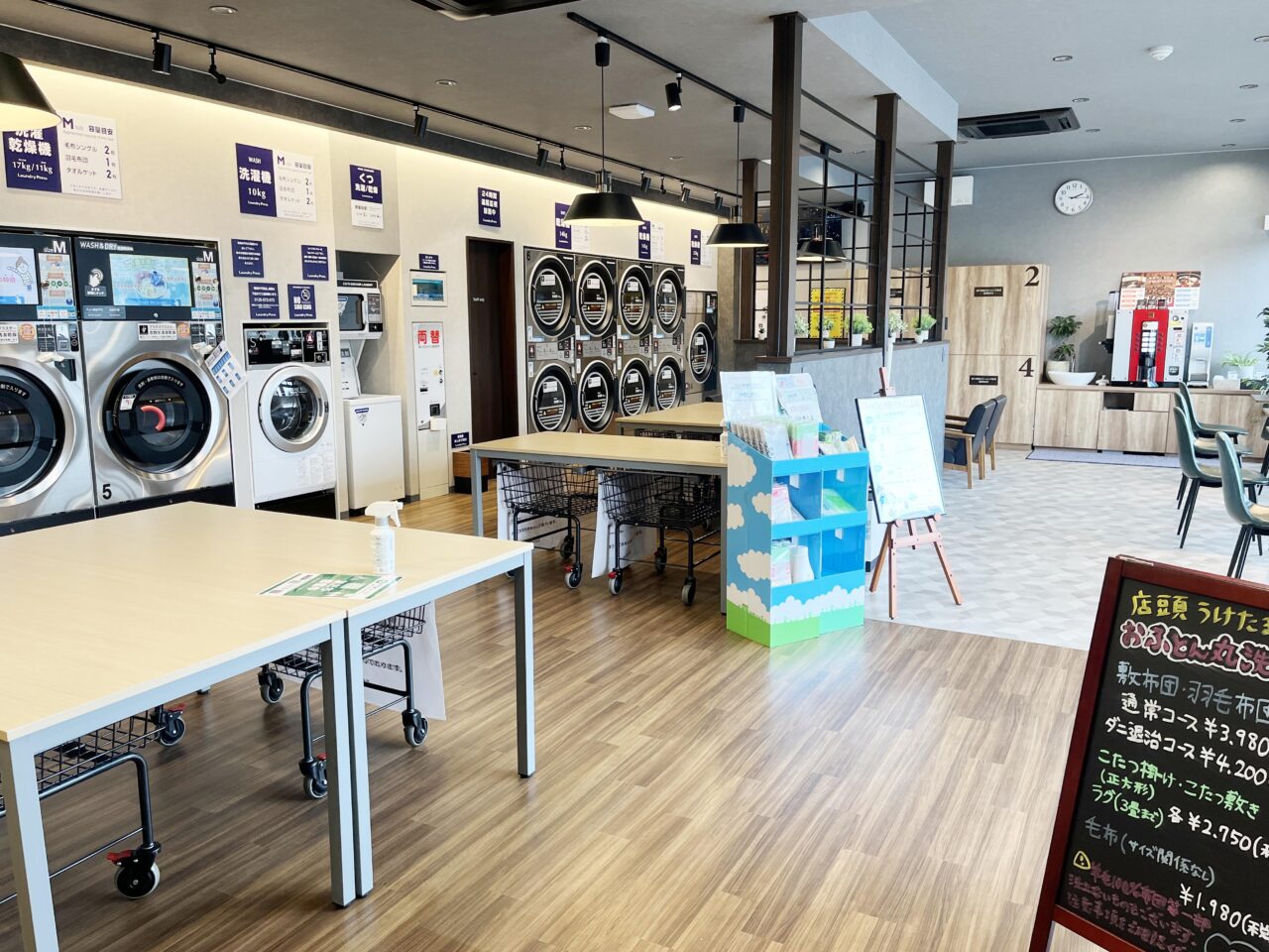 平日9時から15時まで・土日は9時から13時までは、スタッフさんがいらっしゃいます。その時間帯だけのサービスもあるんですよ。なんと、お布団を丸ごと洗って乾燥してくださいます。