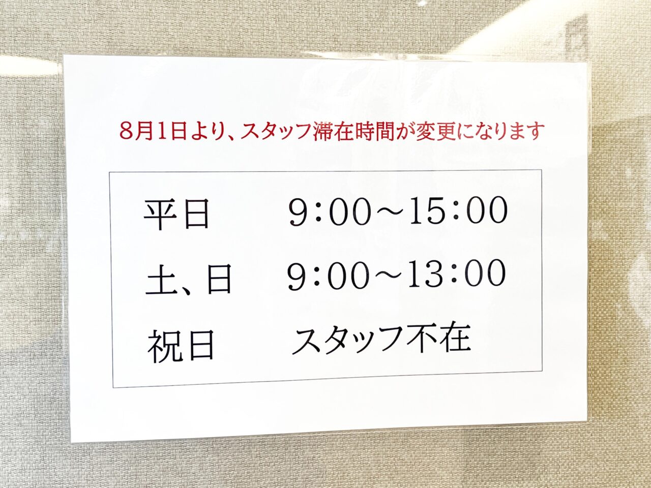 スタッフ駐在は平日9時から15時まで・土日は9時から15時 - 電話番号