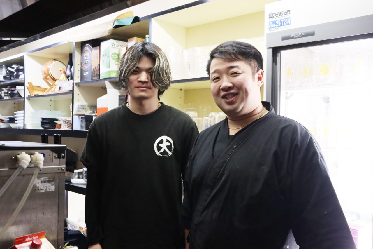 大将は稲積大輔さん(写真右)。地域の祭りや獅子舞にも精力的に活動し、みんなを引っ張る兄貴肌の若き大将です。稲積さんは実際に船に乗り、自ら海に出ることも。魚の目利きは確かです。その日の漁師直通の旬魚を見極め、店に並べています。