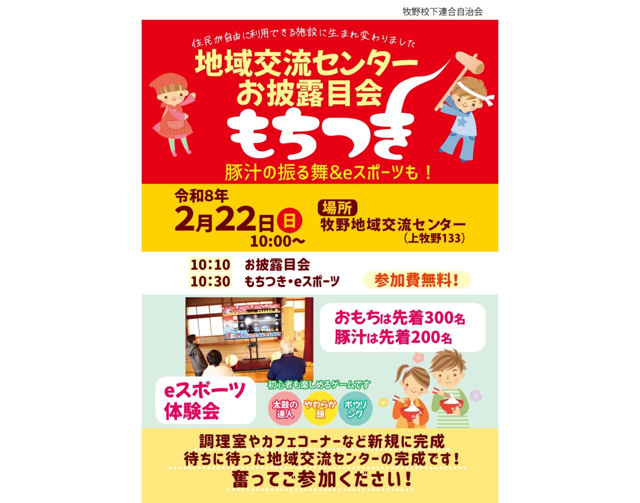 情報提供・美味しいお餅、豚汁の振る舞いを提供くださいました牧野地区の連合自治会長 江守裕様、地域の皆様、ありがとうございました!