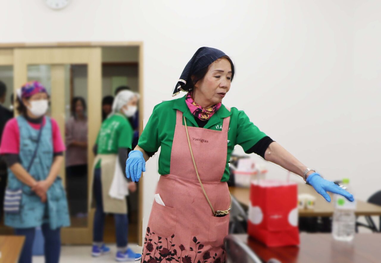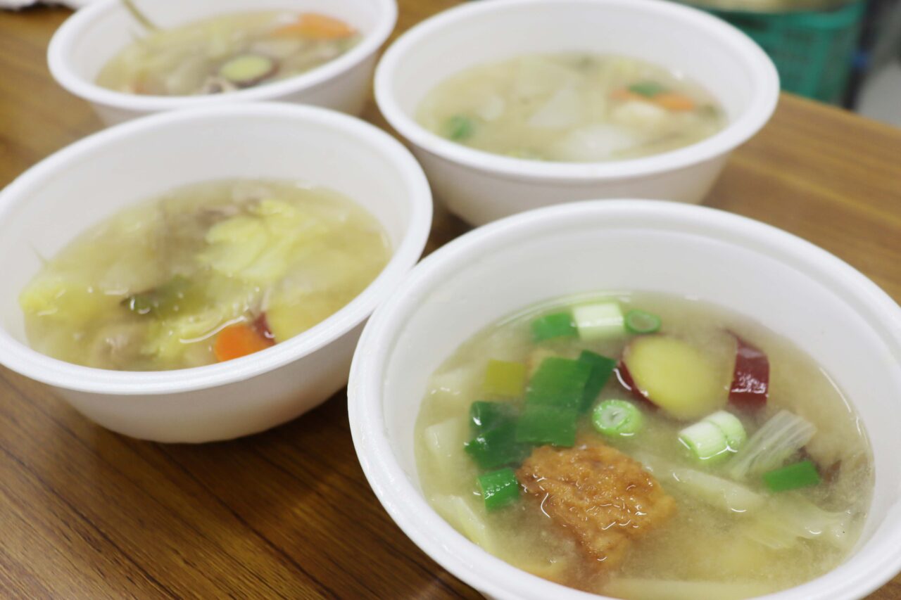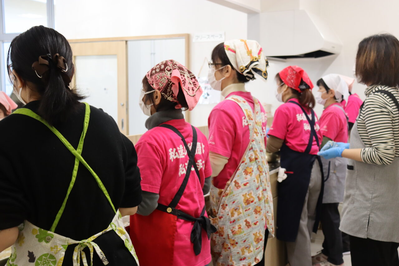 生まれ変わった施設のアピールに、と集った地元の食生活改善推進員や健康づくり懇話会の皆さんによる豚汁の振る舞いが、幅広い世代の皆さんの大きな話題になりました。
