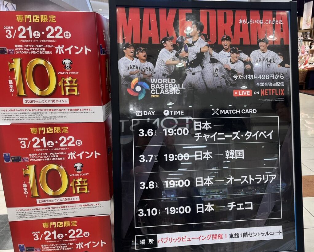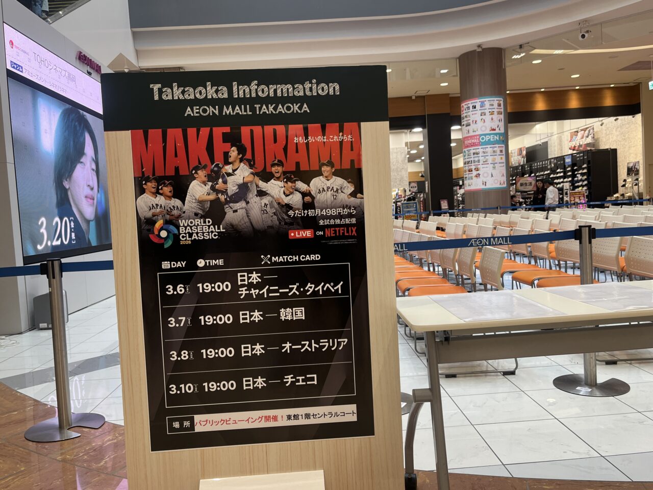 【高岡市】侍ジャパンの試合をみんなで応援!3月6日〜10日、イオンモール高岡でパブリックビューイング開催