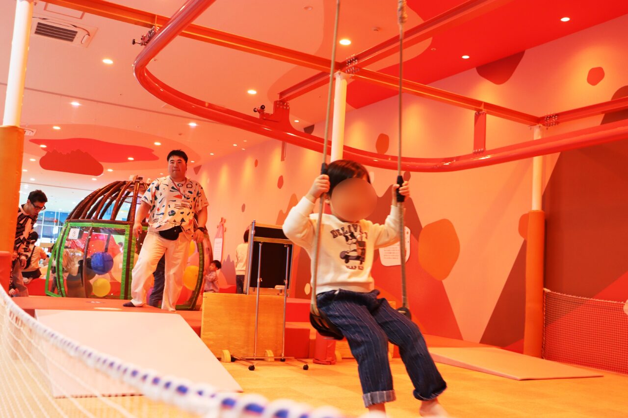 中でも筆者が自分もやってみたい!と感じたのが、1周ぐるっと回ることができる遊具「スカイレールグライダー」です。ふわふわと揺れながら進むブランコのような遊具で、ほかではなかなか見られないユニークな遊具に、子どもたちはニコニコの笑顔を見せ、保護者は楽しそうに写真や動画を撮影していました。