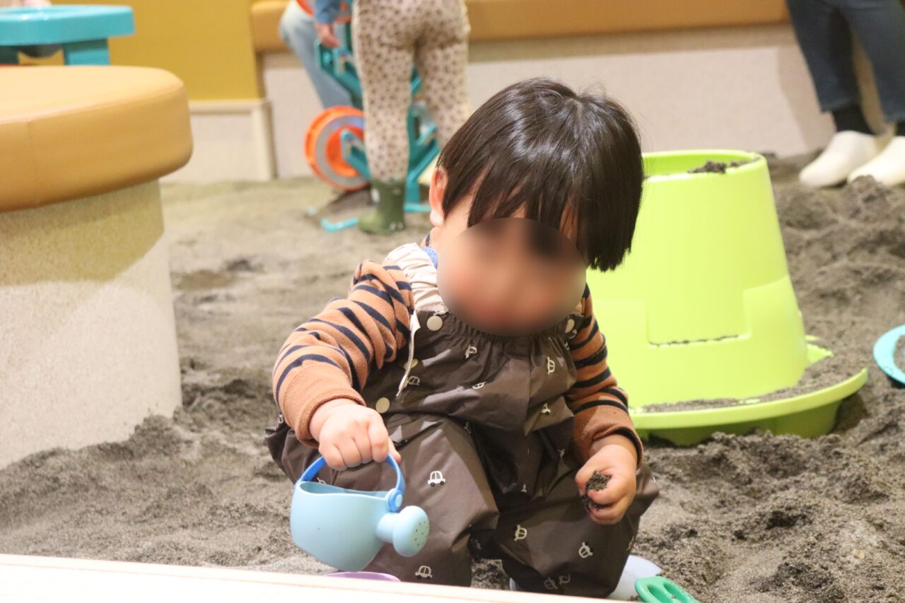 「地層エリア」では、本格的な砂場遊びが楽しめます。室内とは思えないほどのクオリティで、子どもたちは夢中になって砂遊びをしており、ここがイオンモールの中だということを忘れてしまいそうになるほどです。