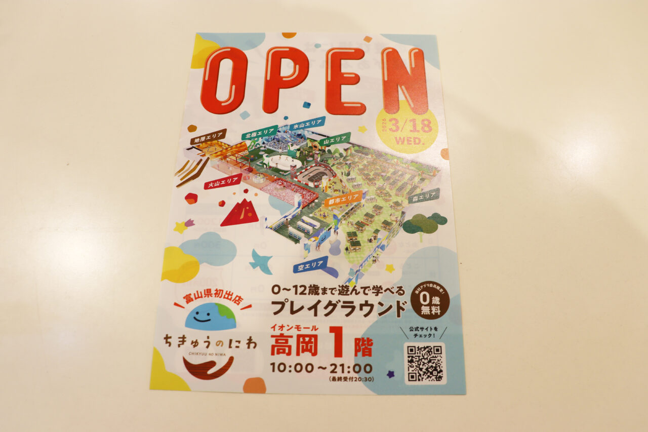 子どもとファミリーが遊びながら地球の面白さや自然の大切さを学べるプレイグラウンド「ちきゅうのにわ」が、イオンモール高岡東館1階に2026年3月18日グランドオープンします。今回はご招待いただき、3月14日に一足早く体験させていただきました。