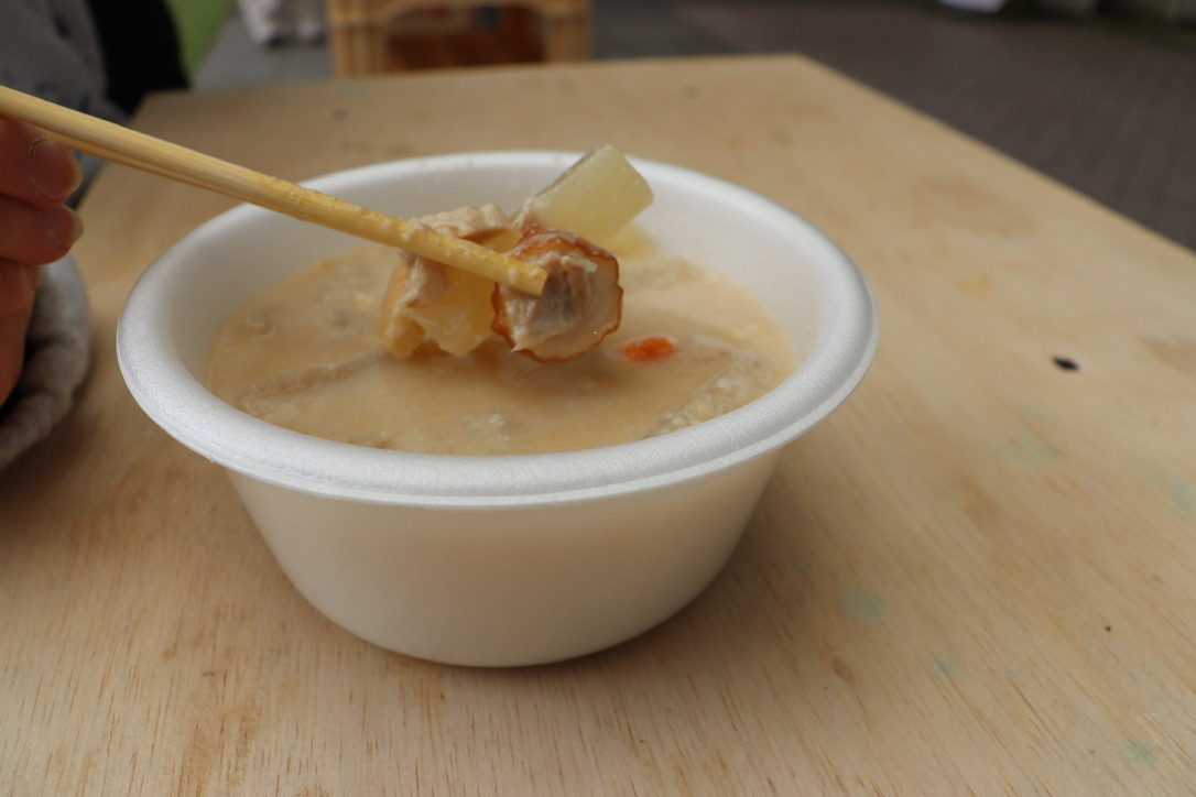 さらに、居酒屋寿々屋によるラーメンの出店、また夜カフェぽんぷくによる粕汁の出店もあり、寒さの中で味わうあたたかい一杯は、来場者にとってまさに至福のひとときとなっていたようです。