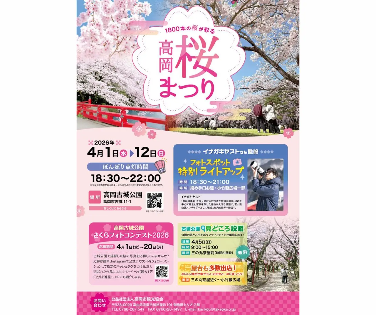【高岡市】ついに開幕!高岡古城公園で「高岡桜まつり」2026年4月1日〜12日 夜は幻想的なライトアップも