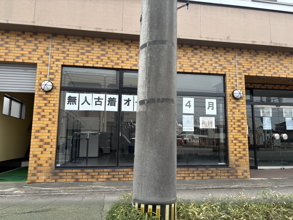 蓮見町に、無人古着店「むじふる高岡店」がオープン予定であることがわかりました。現地では、窓に「無人古着 オープン 4月」と掲示されており、開店に向けた準備が進められているようです。
