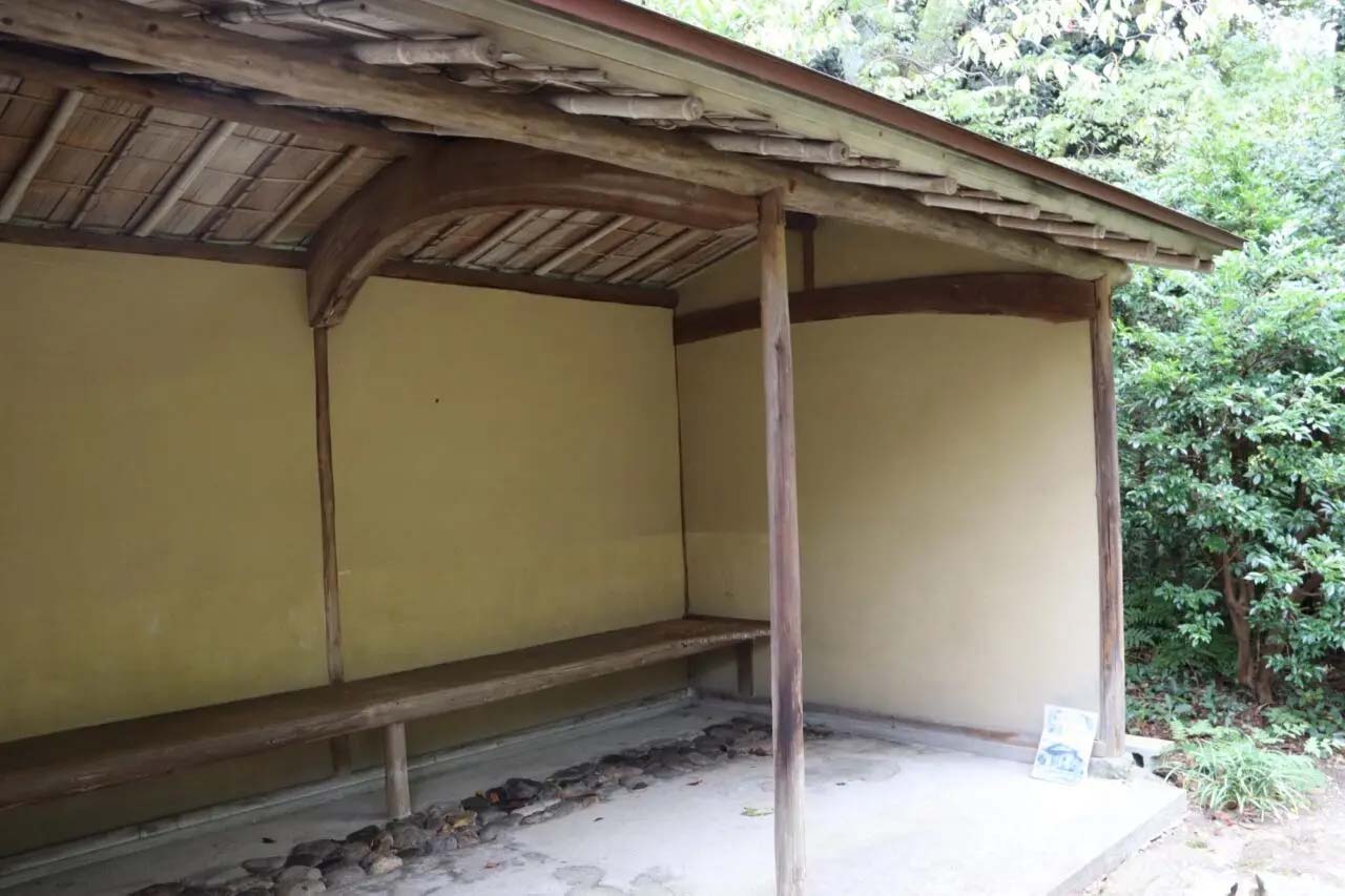 博物館茶室「松聲庵(しょうせいあん)」横の掛待合(こしかけまちあい)