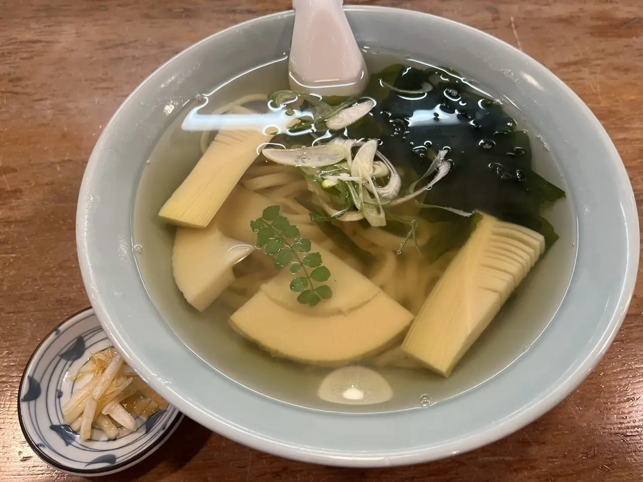 戸出にあるうどん店「ひのや」で、この時期限定の「若竹うどん」が提供されています。たけのことわかめを合わせた春の定番「若竹煮」を、同店のやさしい出汁で仕立てた一杯です。