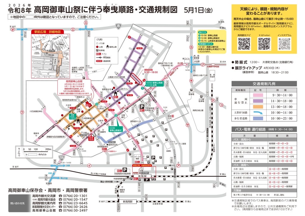 なお、5月1日(金)9時30分から14時までは、万葉線が坂下町で折り返し運転となります。来場の際は交通規制や公共交通機関の運行情報を確認しておくと安心です。